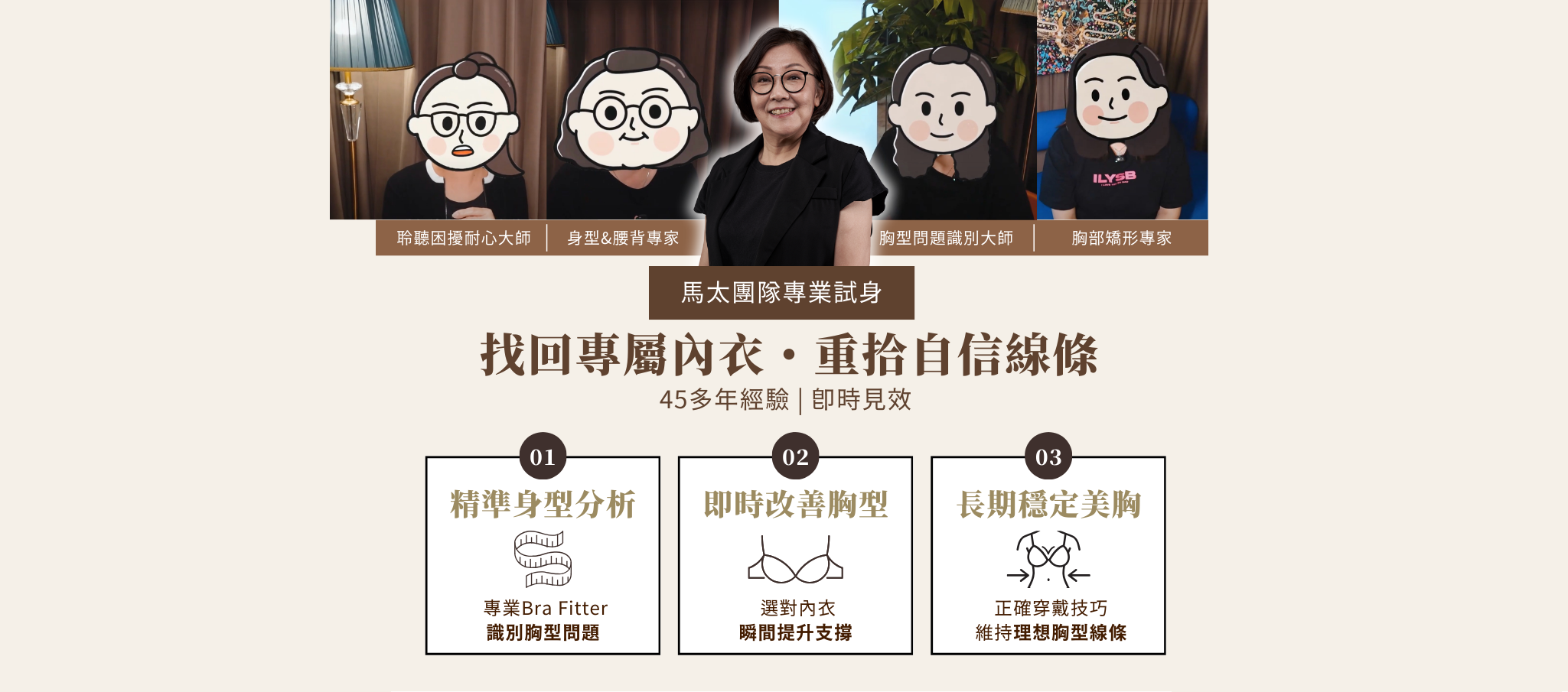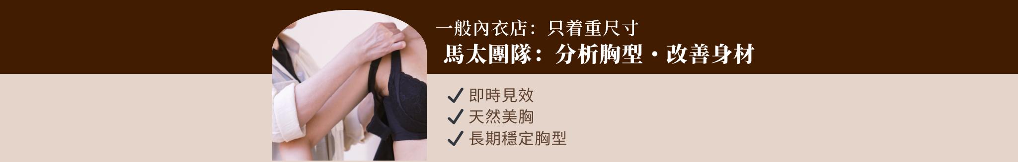 不靠厚墊!我們著重根據胸型+身型比例,挑選適合內衣,長期改善胸型。