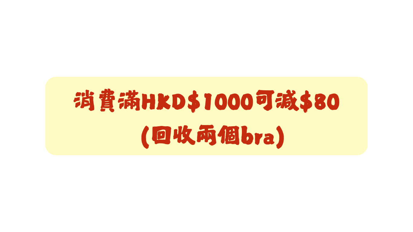 ➡️ 胸圍消費滿 $998 可減 $70(回收兩個Bra)